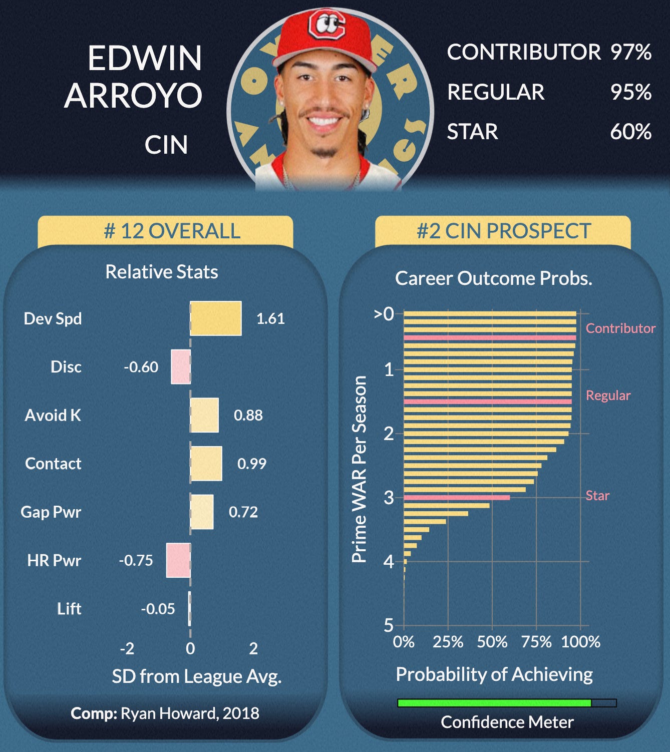We have a confession: we think Baseball America is right to have serious doubts about Arroyo, and that our model is significantly too bullish on him. Gasp!